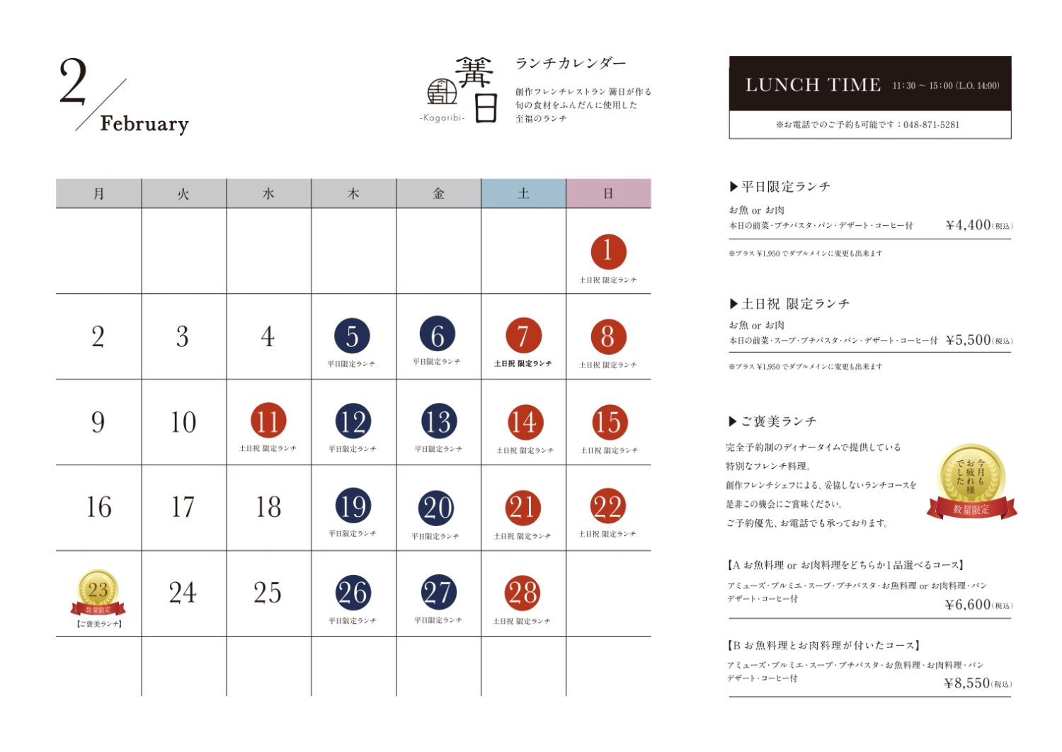 ■平日 限定ランチ 営業日…… 2/5、6、12、13、19、20、26、27
