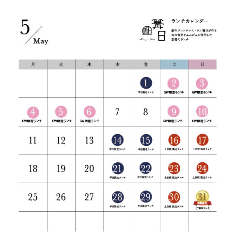 5月2日~10日までのゴールデンウィーク限定特別ランチコース。
